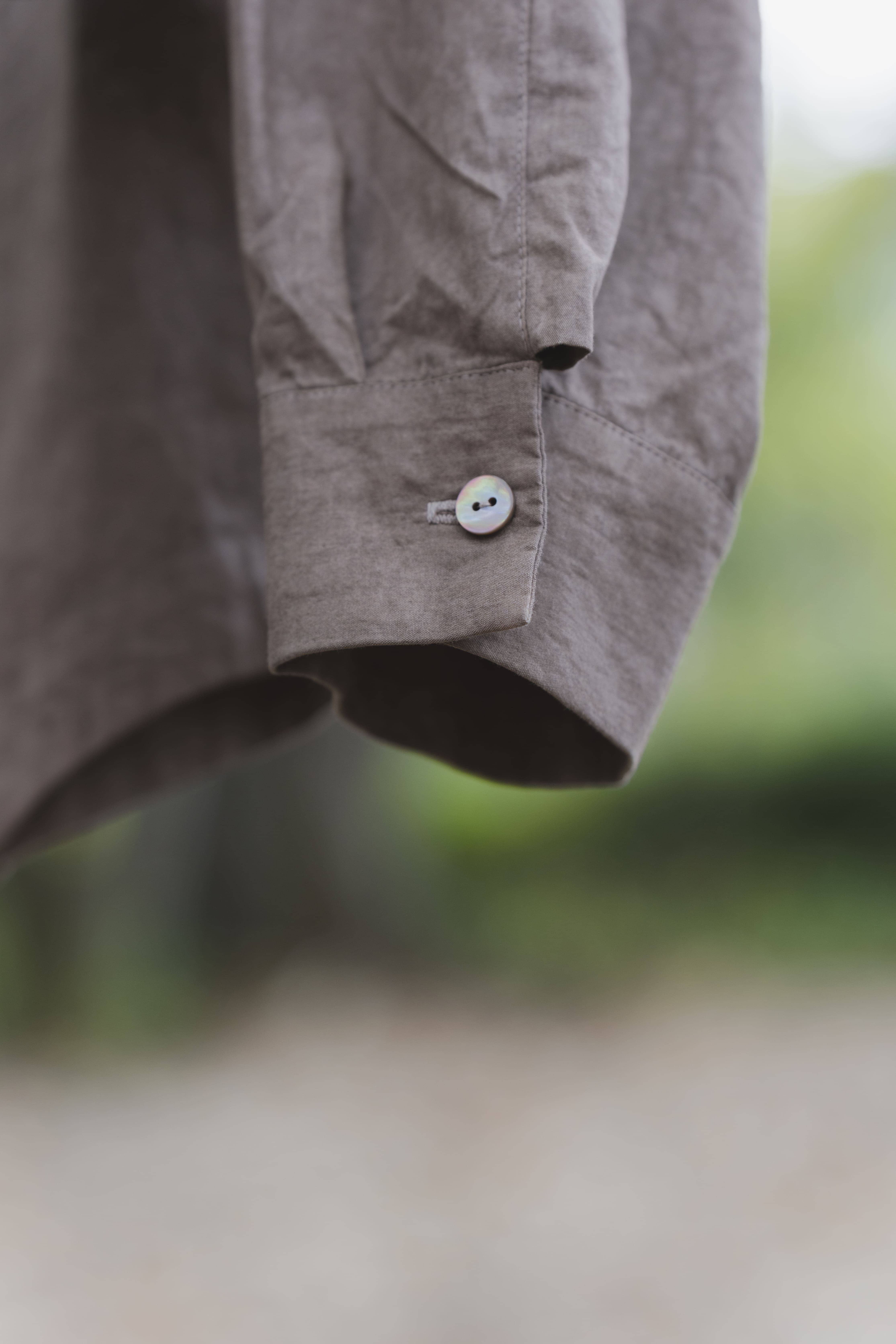 奈良で作られた天然の貝ボタンが控えめな輝きを添え、